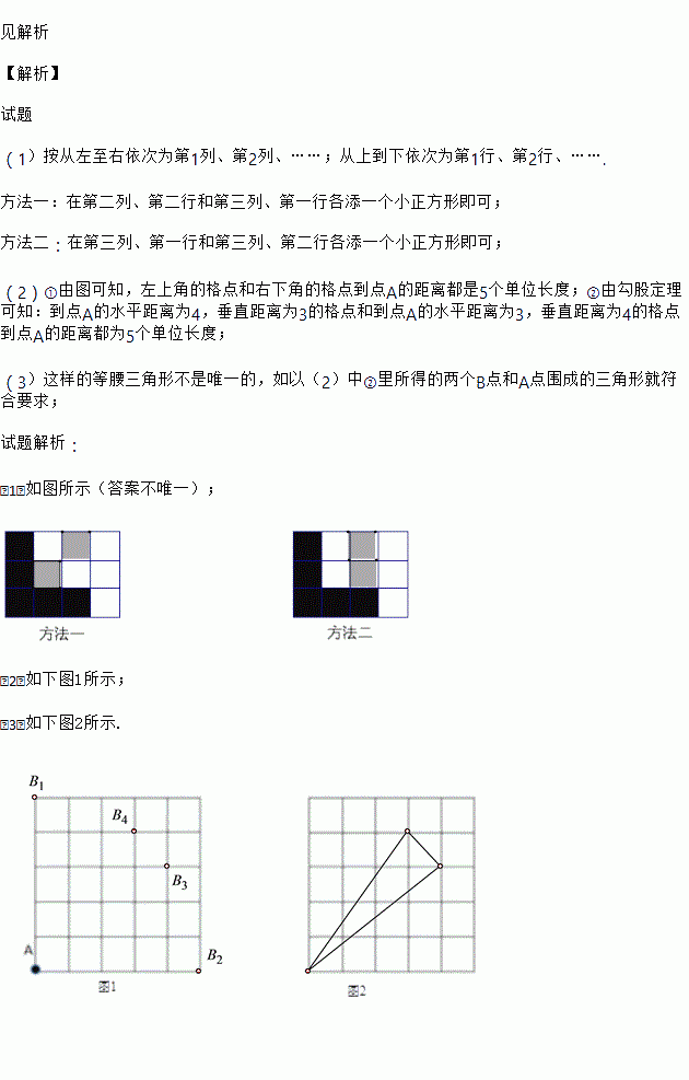 (2)在图1的网格中找出所有能使AB的长度为5的格点B.