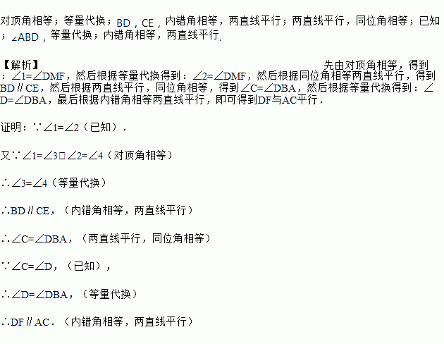 ∴ DF∥AC( ).