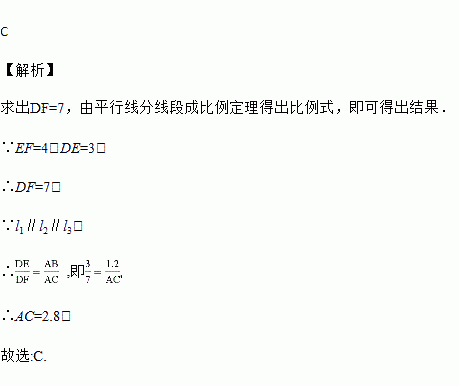 如图直线,直线、分别交、、于、、、、、,且、、、则的长为( )