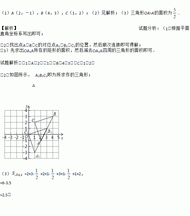 (1)请写出图中点A,B,C的坐标;