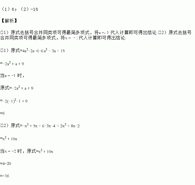 (2)(﹣x2+5x+6)﹣(3x+4﹣2x2)+2(4x﹣1),其中x=﹣2.
