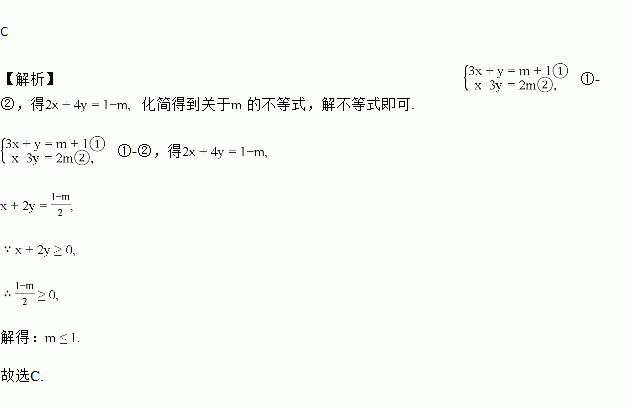 已知方程组的解 x,y 满足 x+2y≥0,则 m 的取值范围是 ( ) .
