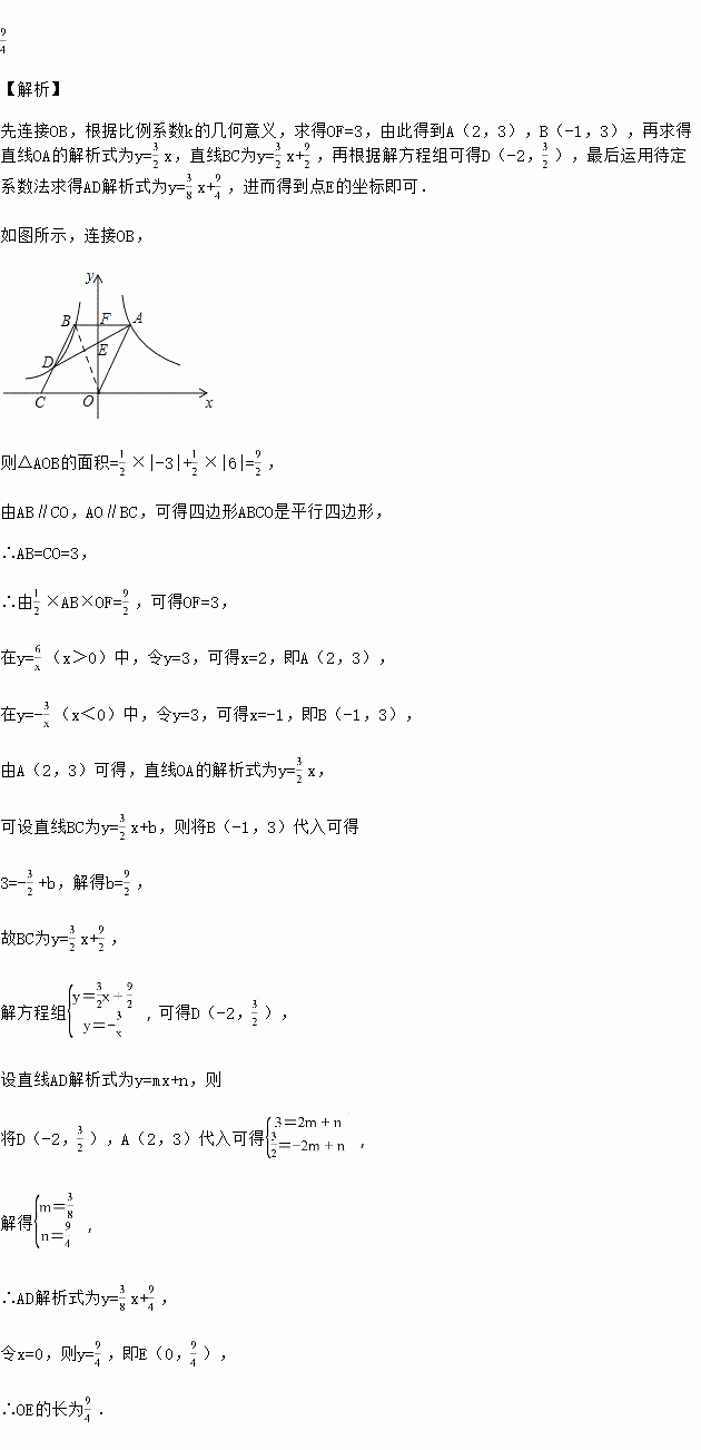 (x<0)于点D,交x轴于点C,连接AD交y轴于点E,若OC=3,求OE的长.