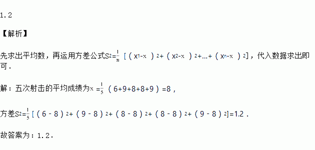 在一次射击训练中,某位选手五次射击的环数分别为6,9,8,8,9,则这位选手五次射击环数的方差为______.