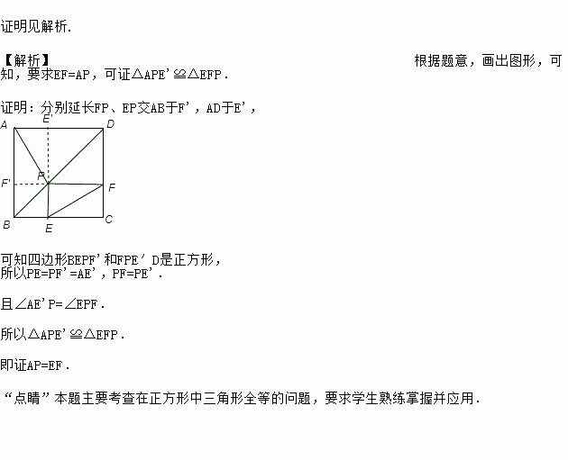 正方形ABCD中,P为对角线BD上一点,PE⊥BC,垂足为E,PF⊥CD, 垂足为F,