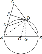分析:(1)如图,连接OD、AD.欲证明DF是⊙O的切线,只需证得DF⊥OD;