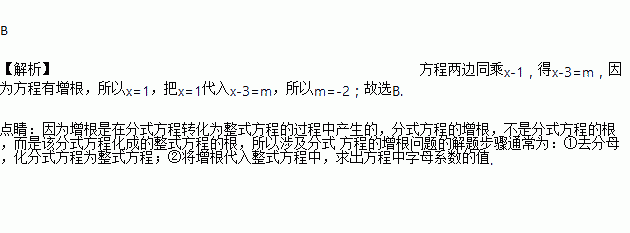 解关于x的方程产生增根,则常数的值等于( )