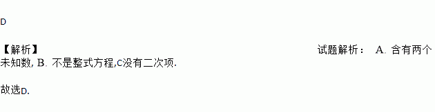 A. 2x-y=3 B. x2+=2 C. x2+1=x2-1 D. x(x-1)=0