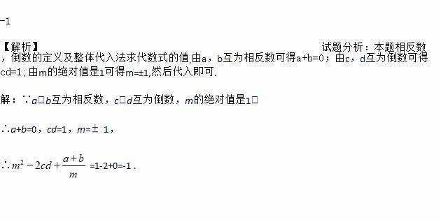 已知a,b互为相反数,c,d互为倒数,m的绝对值是1,求的值.