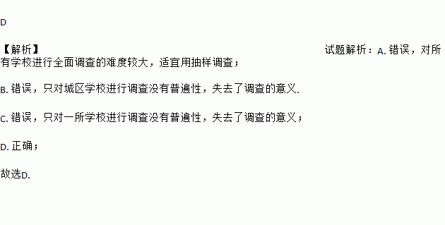 C. 只对一所学校进行调查 D. 抽取农村和城区部分学校进行调查