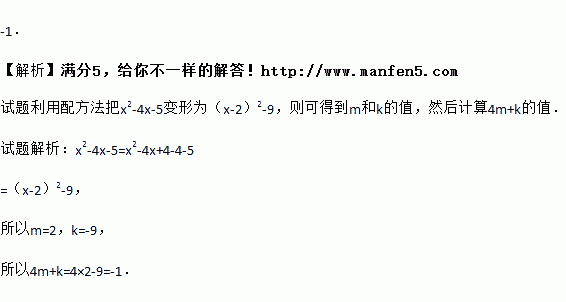 把代数式x2-4x-5化为(x-m)2+k的形式,其中m,k为常数,则4m+k= .
