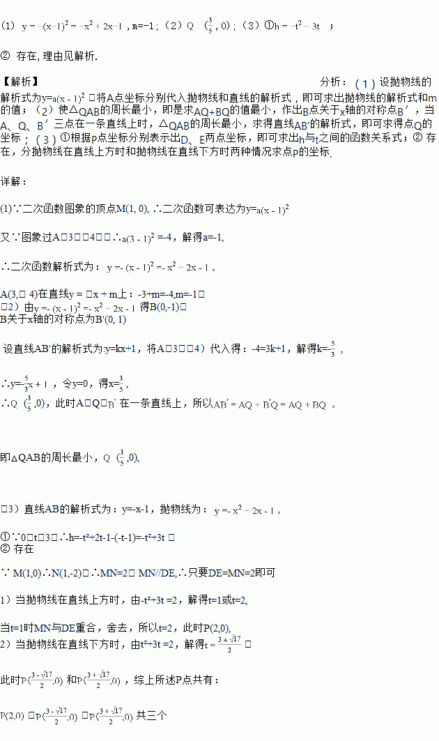 (2)在x轴上找一点Q,使△QAB的周长最小,并求出此时Q点坐标;