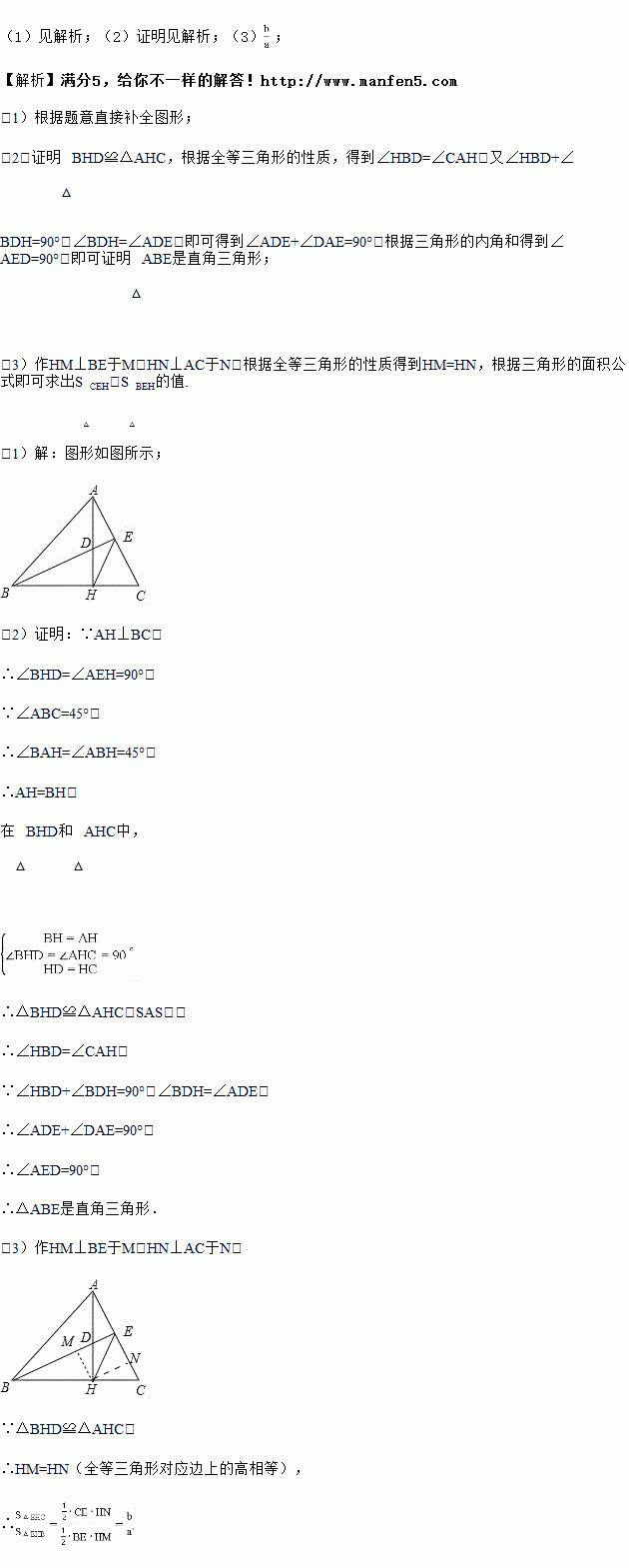 (3)若BE=a,CE=b,求出S△CEH:S△BEH的值(用含有a,b的代数式表示)