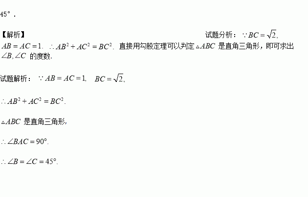 如图,已知在等腰三角形ABC中,AB=AC=1.若BC=,求△ABC三个内角的度数;