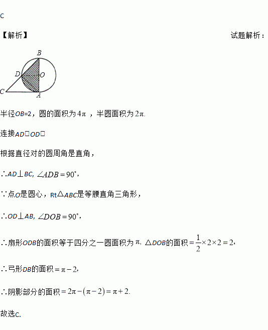 如图,Rt△ABC中,AB=AC=4,以AB为直径的圆交AC于D,则图中阴影部分的面积为( )