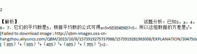 有一组数据如下:3,a,4,6,7.它们的平均数是5,那么这组数据的方差为 .