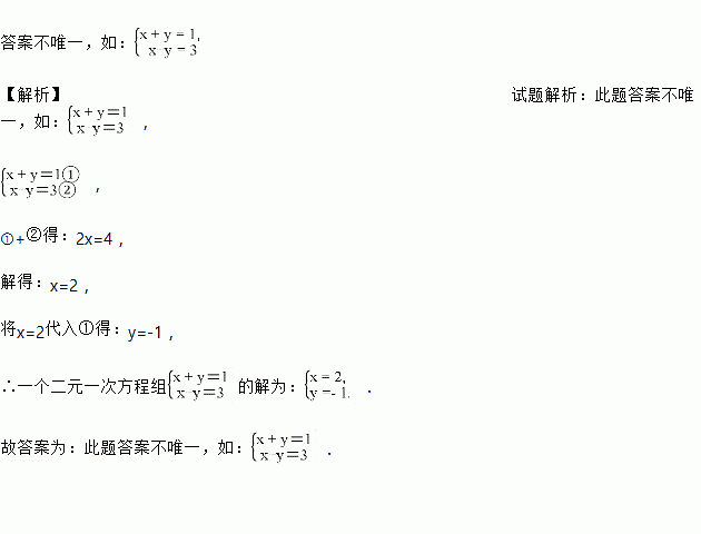 请写出一个二元一次方程组_______________,使它的解是