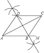 已知:如图,菱形ABCD的AB边在射线AM上,AC为它的对角线,请用尺规把这个菱形补充完整.(保留作图痕迹,不写画法)