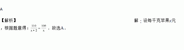 为吸引新用户支付宝推出“领红包抵现金活动”.甜甜在这个月中扫码共领取了100元红包,她想用这100元红包来买苹果.若买同样多的砂糖橘,还要从银行卡中多支付10元.已知每千克砂糖橘比每千克苹果贵2元,设每千克苹果x元,由此可列方程( )