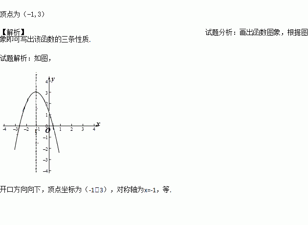 求二次函数的顶点坐标,并在下列坐标系内画出函数的大致图像.说出此函数的三条性质.