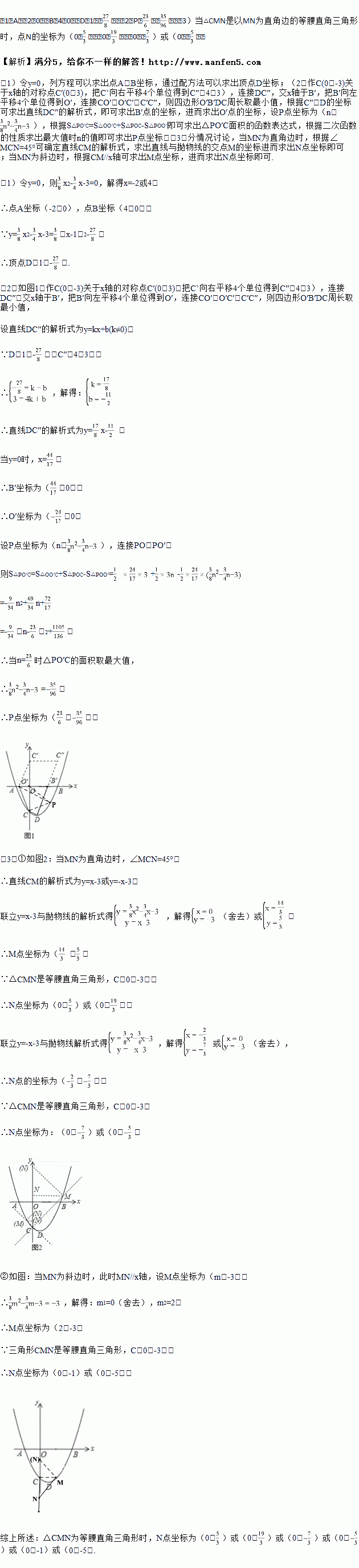 (3)如图②,若点M是抛物线上一点,点N在y轴上,连接CM、MN.是否存在一点N,使△CMN为等腰直角三角形,若存在,直接写出点N的坐标;若不存在,说明理由.
