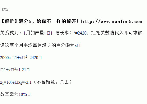 某钢铁厂去年月某种钢发产量为吨,月上升到吨,这两个月平均每月增长的百分率为________.