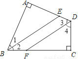 如图,四边形ABCD中,∠A=∠C=90°,BE平分∠ABC,DF平分∠ADC,则BE与DF有何位置关系?试说明理由.