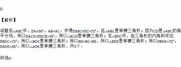 如图,在△ABC中,∠A=36°,AB=AC,BD是△ABC的角平分线.若在边AB上截取BE=BC,连接DE,则图中等腰三角形共有( )