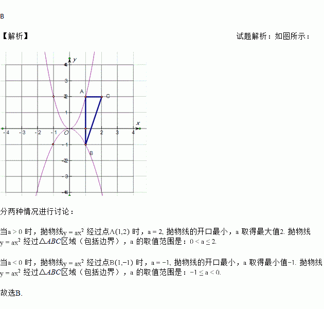 (a≠0)经过△ABC区域(包括边界),则a的取值范围是( )