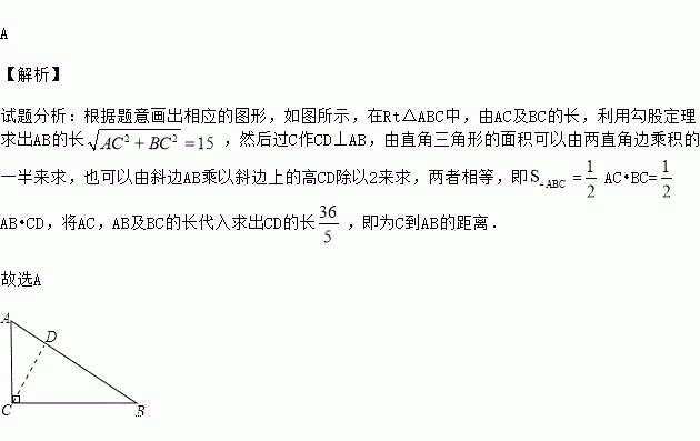 在Rt△ABC中,∠C=90°,AC=9,BC=12,则点C到斜边AB的距离是( )