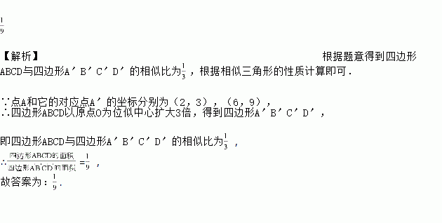 在直角坐标系中,把四边形ABCD以原点O为位似中心放缩,得到四边形AˊBˊCˊDˊ.若点A和它的对应点Aˊ的坐标分别为(2,3),(6,9),则=______