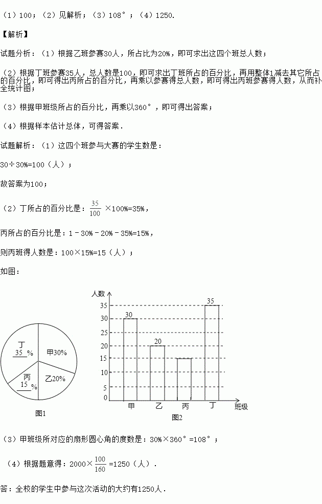 (4)若四个班级的学生总数是160人,全校共2000人,请你估计全校的学生中参与这次活动的大约有多少人.