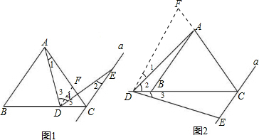 如图△ABC为等边三角形,直线a∥AB,D为直线BC上一点,∠ADE交直线a于点E,且∠ADE=60°.
