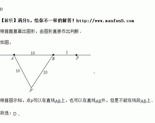 已知线段AB=10cm,PA+PB=20cm,下列说法正确的是( )