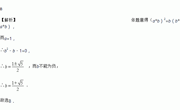 如图,若将左图正方形剪成四块,恰能拼成右图的矩形,设a=1,则b=( )