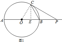 解答 (1)证明:连接OC,过点C作CE⊥AB于点E,如图1所示.![]()