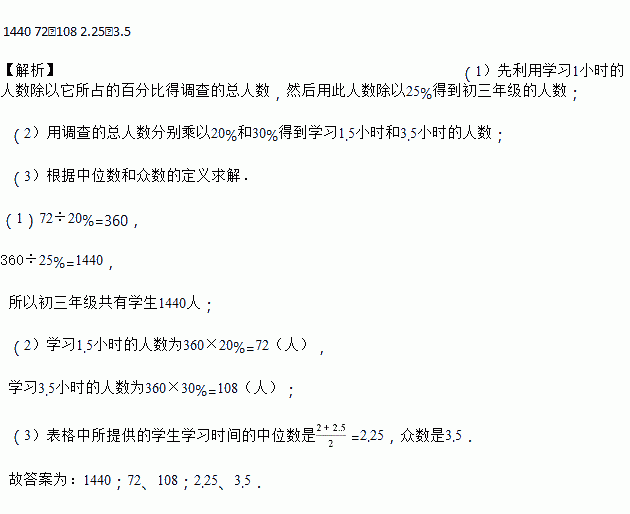 (3)表格中所提供的学生学习时间的中位数是_____,众数是_____.