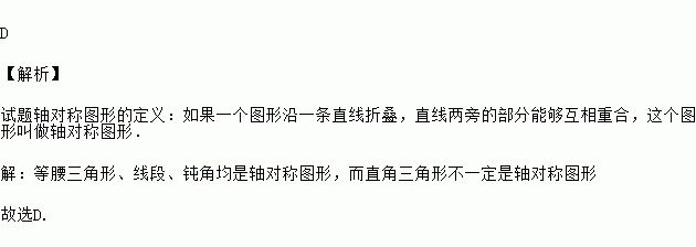 A.等腰三角形 B.线段 C.钝角 D.直角三角形
