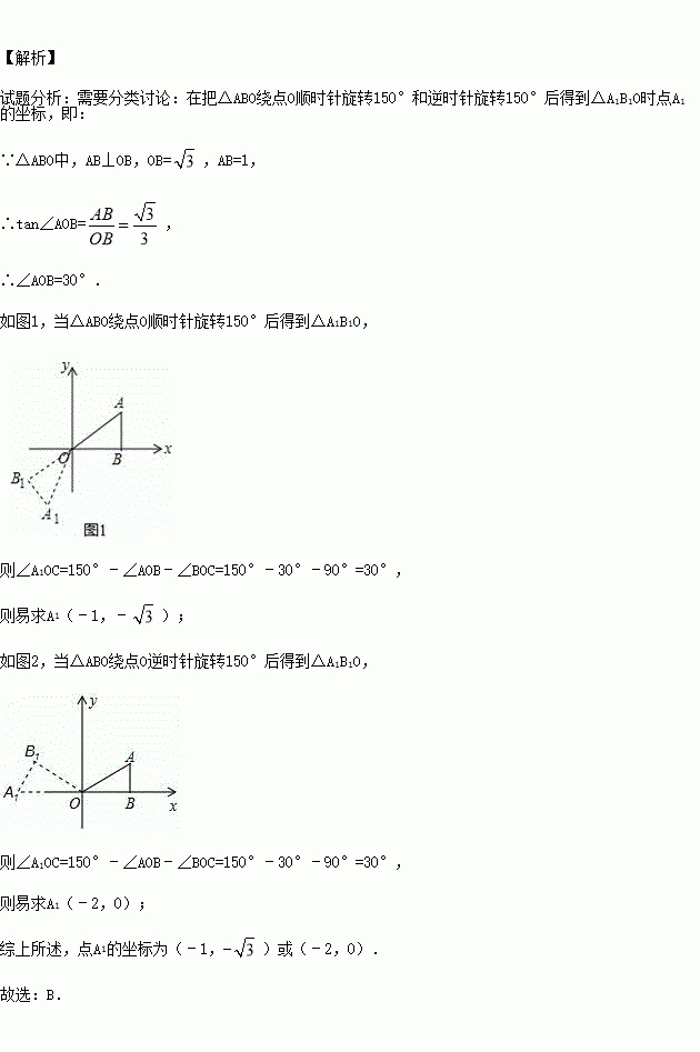 ,AB=1,把△ABO绕点O旋转150°后得到△A1B1O,则点A1坐标为( )