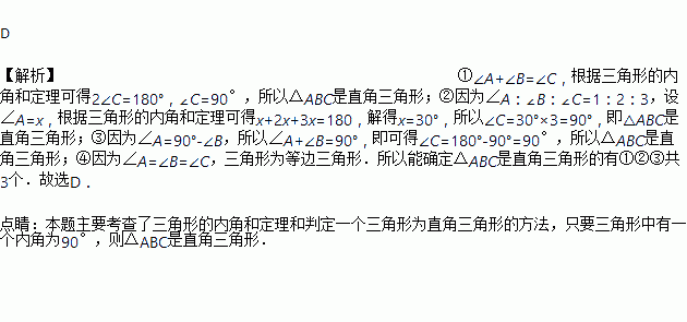 在下列条件中:①②③④中,能确△ABC是直角三角形的定条件有