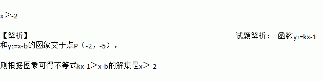 如图,已知函数y1=kx-1和y2=x-b的图象交于点P(-2,-5),则根据图象可得不等式kx-1>x-b的解集是 .