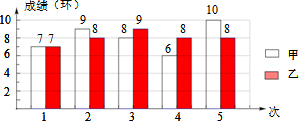 8.甲、乙两人进行射击比赛,他们5次射击的成绩(单位:环)如图所示:设甲、乙两人射击成绩的平均数依次为$\overline{{x}_{甲}}$、$\overline{{x}_{乙}}$,射击成绩的方差依次为$S_甲^2$、$S_乙^2$,那么下列判断中正确的是( )