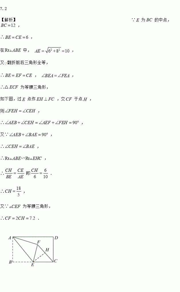 如图,在矩形中, , ,点为的中点,将沿折叠,使点落在矩形内点处,连接,则的长为__________.