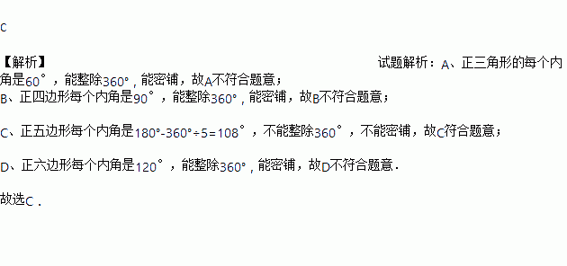 使用同一种规格的下列地砖,不能进行平面镶嵌的是( )