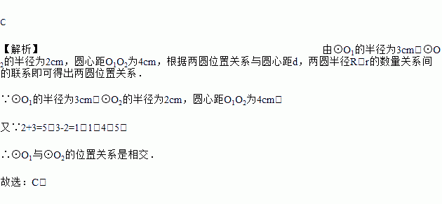已知⊙O1的半径为3cm,⊙O2的半径为2cm,圆心距O1O2=4cm,则⊙O1与⊙O2的位置关系是( )
