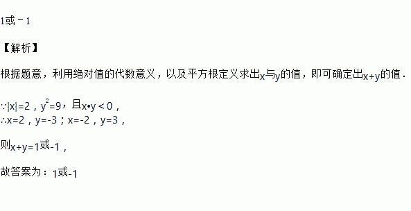 已知|x|=2,y2=9,且x•y<0,则x+y=_____.