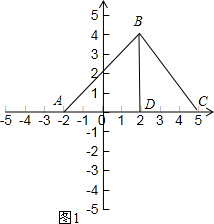 由A(-2,0),B(2,4),C(5,0)