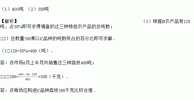 (2)该村民合作社计划6月份销售A、B、C三种特色农产品共500吨,根据该村民合作社5月份的销售情况,问该村民合作社应准备C品种特色农产品多少吨比较合理?