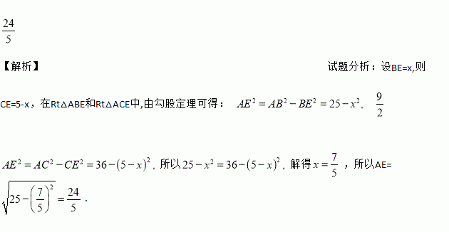如图,在菱形ABCD中,AB=5,对角线AC=6.若过点A作AE⊥BC,垂足为E,则AE的长为_________.