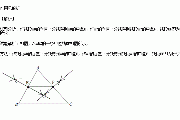 如图,已知△ABC,请用圆规和直尺作出△ABC的一条中位线EF(不写作法,保留作图痕迹).